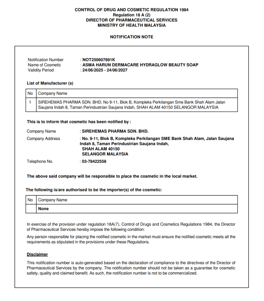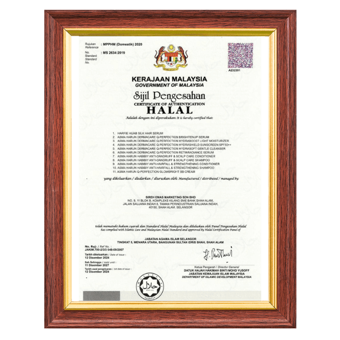 Ya, semua produk Asma Harun Dermacare diperbuat di kilang bertaraf GMP, dan berdaftar dengan Kementerian Kesihatan Malaysia (KKM).