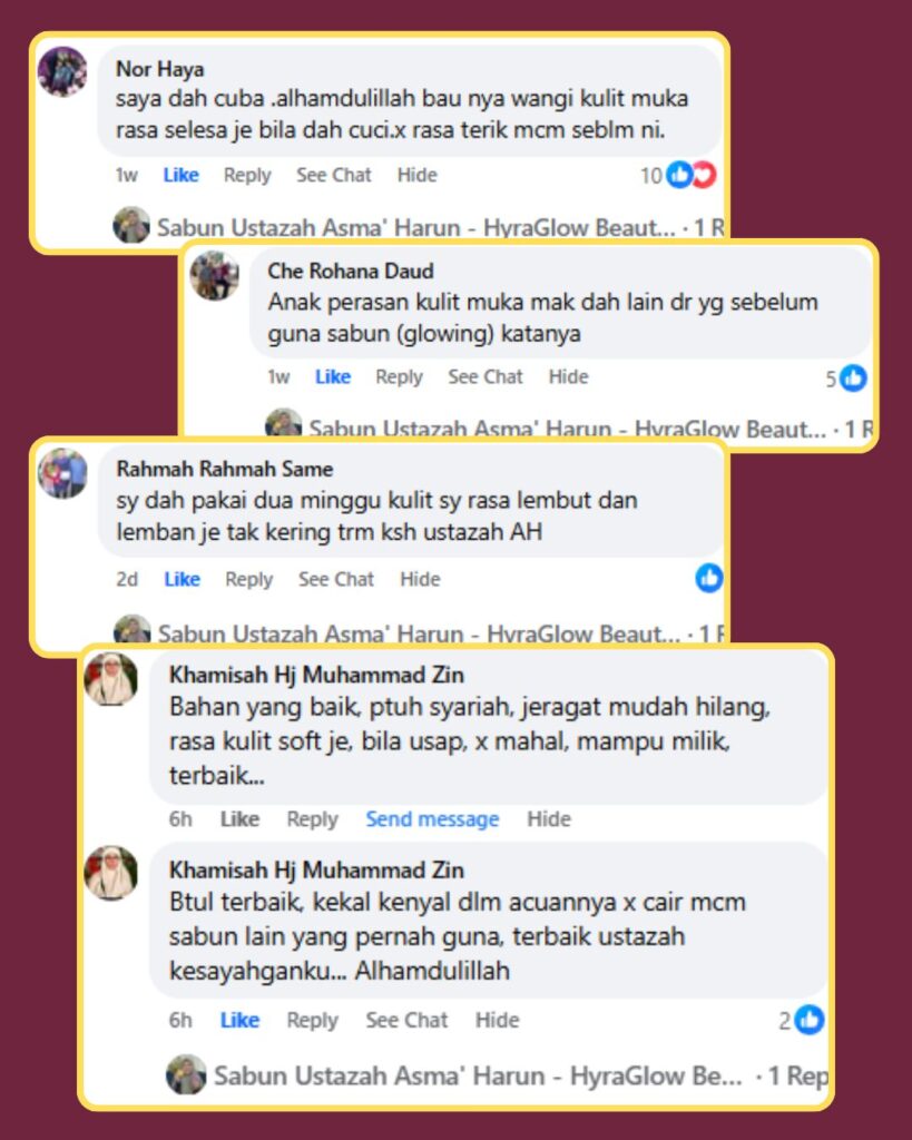 Produk ini bukan sekadar untuk dijual, tapi benar-benar menjadi ikhtiar penjagaan kulit harian Ustazah sendiri.